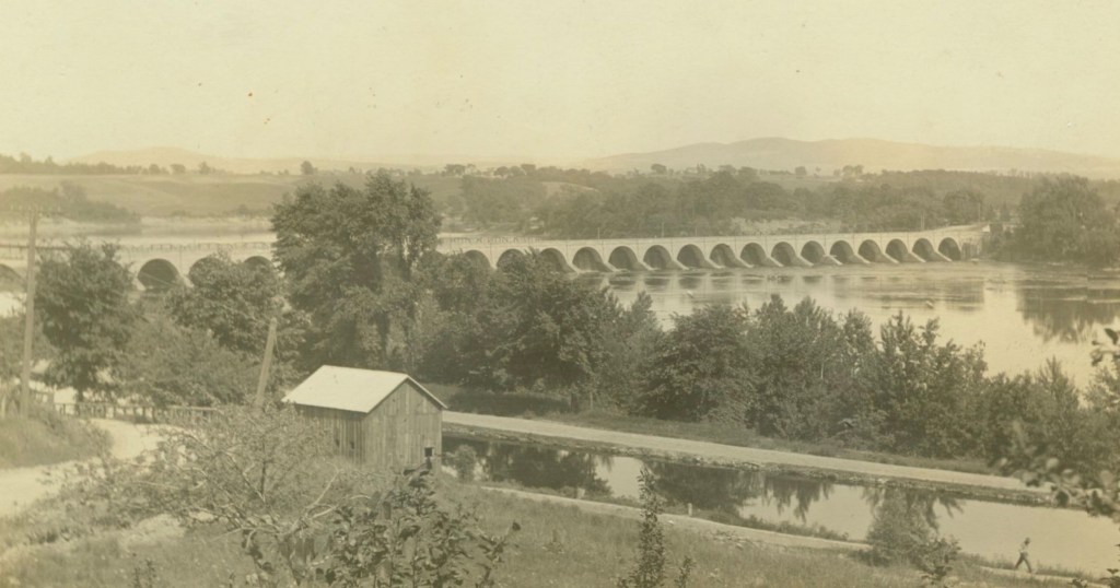 Walk further and you pass over the 1842 enlarged Erie Canal. This was the Erie Canal, the waterway west until 1917 when the Canal was moved to the current mainstream of the Mohawk River. The towpath for this Canal was washed out with a spring flood sometime in the late 1980’s. Would it be difficult to replace this towpath with a boardwalk? When the Towpath Community Connector Trail was constructed in 2015 the trail followed the route south, along the Water Authority access road you are on today.