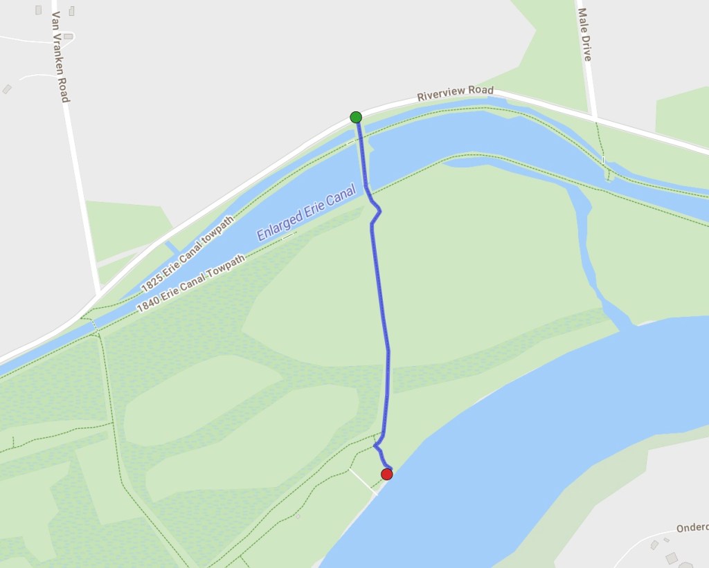 Carefully park at the entrance to the Water Authority access road on Riverview Road half way between Male Drive and VanVranken Road. I use the adjective “carefully”, because you don’t want to block access to Clifton Park’s water supply infrastructure. If there are more than three cars there come back another day or later is the day!
