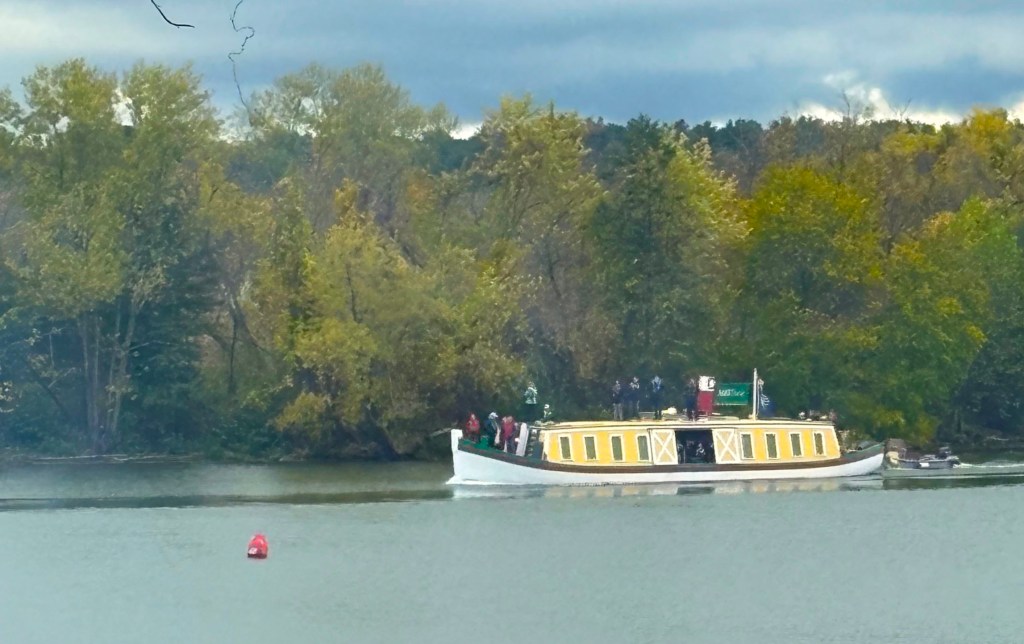 The boat spent the day tied up at Waterford Harbor providing tours to the public and several large groups of school children from various Capital District schools. The crew provided educators that did an impressive job with program geared to grade school youth as they toured the interior of the Seneca Chief, planted a pine tree and explaining the perspective of indigenous people as the Erie Canal cut through native lands.
