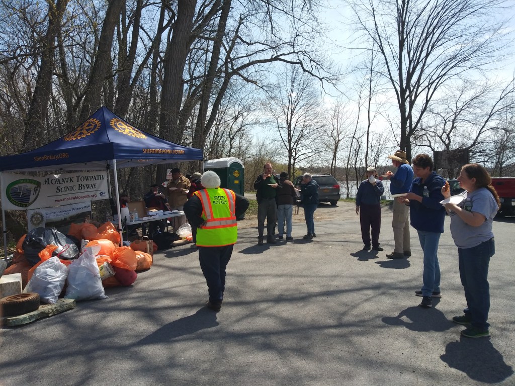 Nine stalwarts from North River Friends of Clearwater joined forty-five volunteers from a combined group of pickers from Shenendehowa Rotary, Interact of Southern Saratoga and Friends of the Mohawk Towpath Scenic Byway in and around the Vischer Ferry Nature and Historic Preserve. NRFC selected a portion of the towpath between Ferry Drive and Erie Canal Lock 19. The main trail had numerous pickers so the trail got pretty clean fairly quickly. Several of us, therefore, decided to fan out on various side trails where we had better luck, and resent flooding provided more stuff closer to the banks of the Mohawk River in Saratoga County.