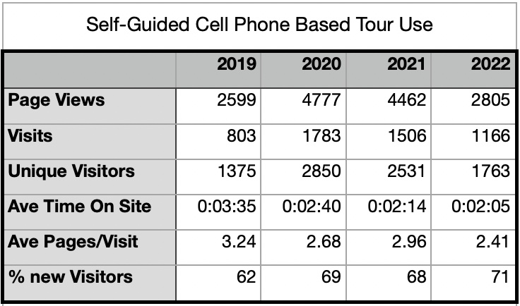 But how do we measure or quantify our successes? The designated route is along public roads that are open 24/7/365! Most of our historic features are along public highways or in, or along side the right-of-way. One such measure would be the number of hits on our website. That’s a start, but that’s only the visitors to our website. Intuitively visits to our website would reflect early curiosity or the number of people searching for a unique experience, not physical visits to the Byway. When we first set up the Byway’s website one of the concerns was that if we included too much information, too many pictures that would provide the whole experience and no one would try the real, authentic, visit.